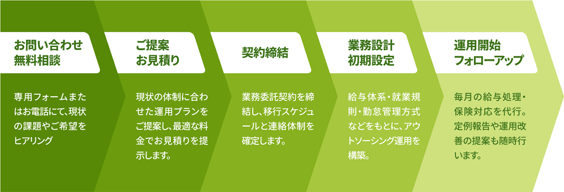 従業員数・サービス内容に応じて月額3万円〜。まずは無料相談ください。