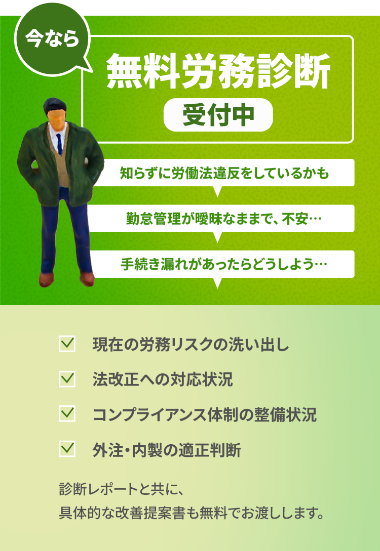 - 「残業代の算出ミス」「有給管理の不備」「社保未加入」など、重大なコンプライアンス違反を未然に防ぐサポート体制が整います。